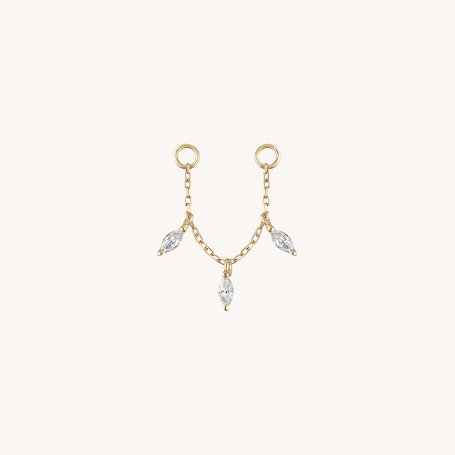 Deze chain van 14kt massief goud en 3 zirkonia's is veelzijdig te gebruiken voor het upgraden van jouw earparty.